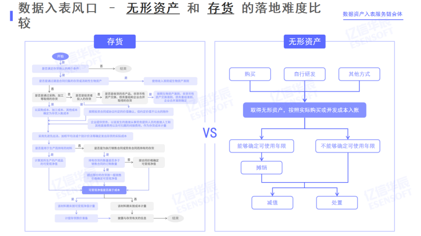 刘晗指出,2024年1月1日以后,企业的信息化建设可以以成本法方式进行入表,信息化建设本身可以转化为资产,这意味它不仅具备了这个资产的财务价值,还具有了生产和交易价值。对于大家都关心的数据资产到底如何入表的问题,他将其方法拆解为三步,第一步是入表形成原始资产,第二步是形成无形资产收入,第三步是形成存量资产。针对资产类型的选择,刘晗给出了明确的建议,“基于入表成本以及入表效率考虑,建议大家在现在阶段以无形资产入表为首选项”。