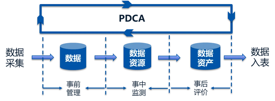 PDCA循环,即Plan(计划)、Do(执行)、Check(检查)和Act(行动)的循环,是质量管理的基本方法。在数据入表的数据资产质量管理中,PDCA同样适用。