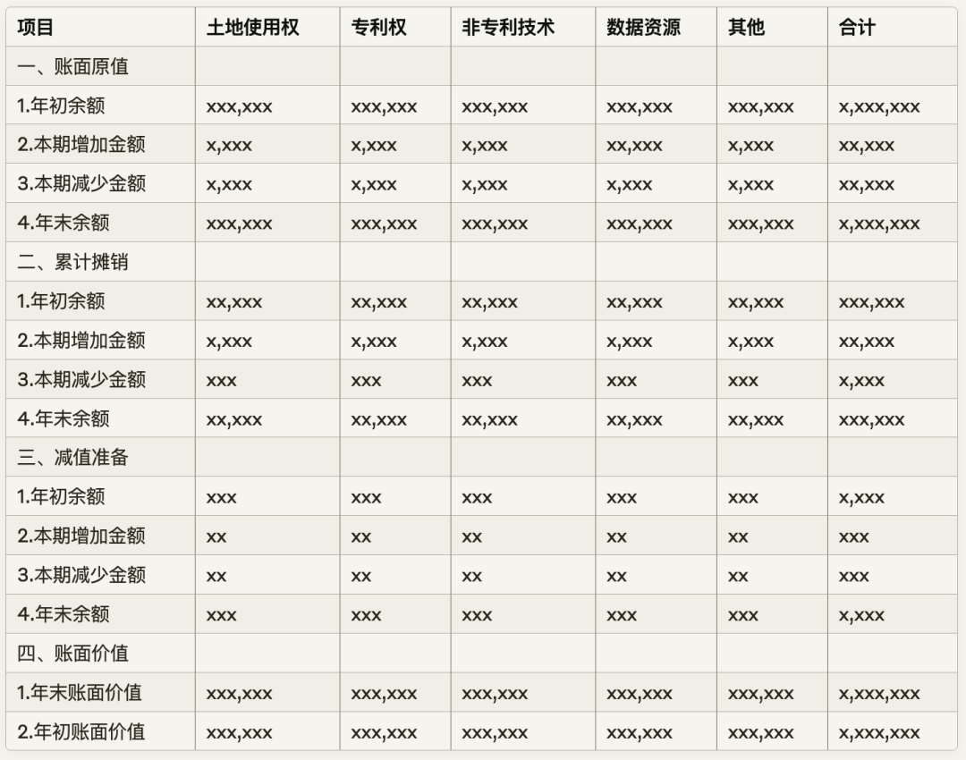 列示方式:无形资产 xx,xxx 其中:数据资源 xx,xxx